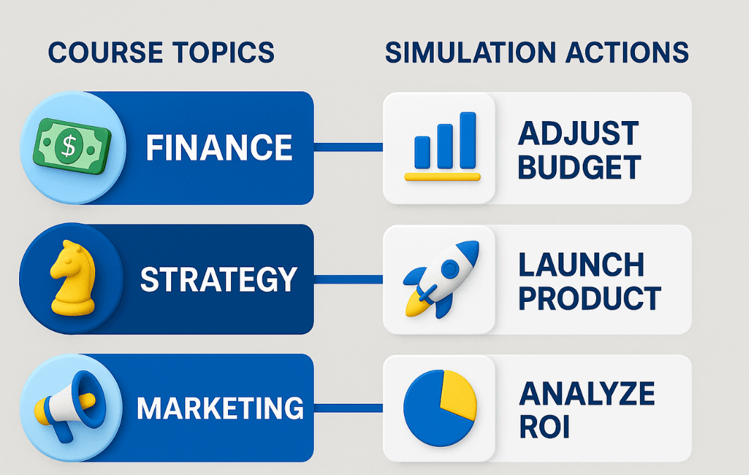 Our platform uses adaptive challenges that ensure no two experiences are identical. Market conditions change based on student decisions, creating realistic uncertainty that builds valuable business skills. Learn more about creating engaging experiences in our article on combatting student fatigue with simulation-based learning.